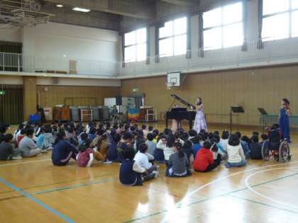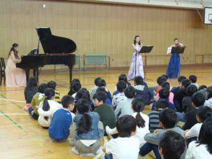 3年生と4年生がプロの音楽家の歌声や演奏を聴きました。