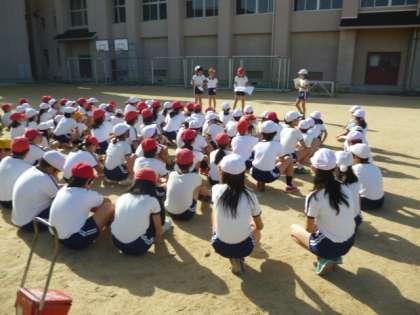 1年生と5年生、2年生と4年生、3年生と6年生がそれぞれペア学年になり、おにごっこやドッジボールなどをしました。高学年の運営委員が中心になり、ハンデをつけるなど、みんなが楽しめる遊びを考えました。