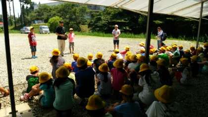 日差しが大変強いので、傘をさして日かげをつくる児童がいました。