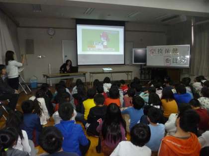 「手洗い・うがいの大切さ」「かぜの予防」について、保健委員会の発表と学校医さんのお話を聞きました。