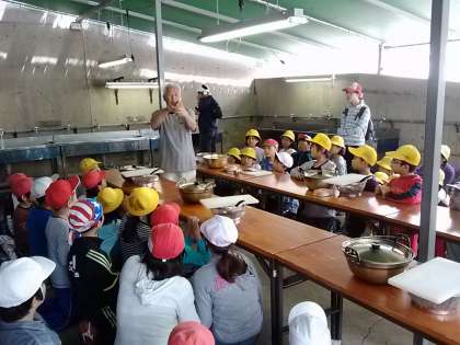 野菜の切り方の説明を聞いて、材料を切って鍋に移します。