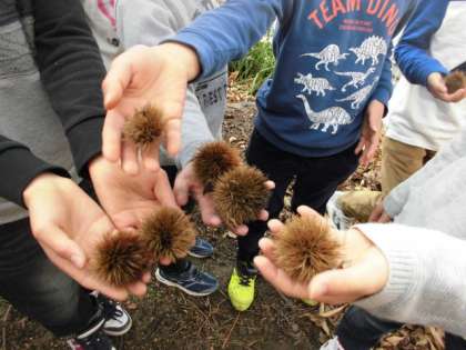ドリームガーデンの整備が終わりましたので、休み時間に開放しました。いろいろな木があり、栗が落ちていたり、みかんが実っていたりしました。初めて入る児童もおり、みんなワクワクしながらドリームガーデンを散策していました。