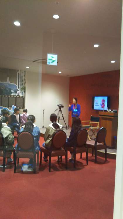 いろいろなシチュエーションルームで、英語を使っての体験をします。少し緊張しながら頑張っています。
