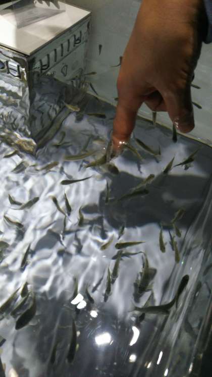綺麗な魚たちをみたり、ドクターフィッシュの水槽に指を突っ込んでみたり。