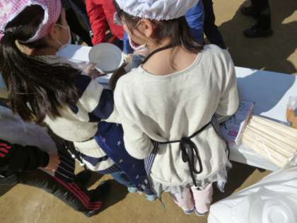今年は、3年生が育てた田辺大根と2年生が育てたサツマイモも具材に入っています。