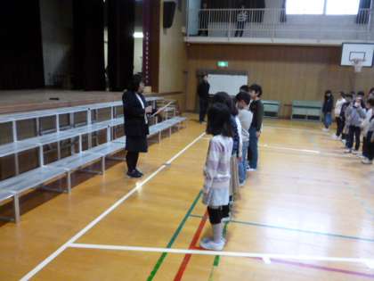図工展で表彰された児童への賞状の授与の後、校長先生から「3・11」東日本大震災についてのお話がありました。