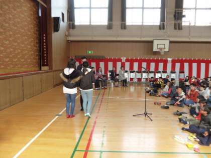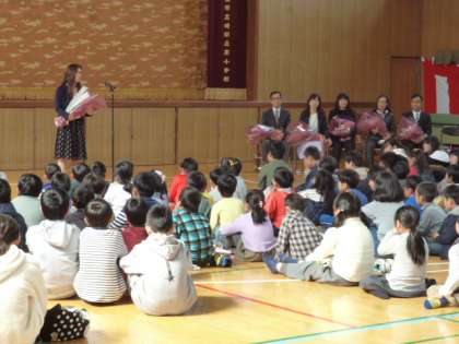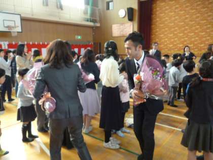 校長先生から転勤される教職員の紹介、花束の贈呈、お別れのあいさつがありました。