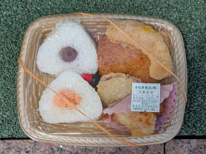 お弁当は、姫路のお弁当屋さん まねき食品(万博にも出店中)のおにぎり弁当です。