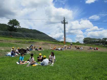 到着したら、高原でのお弁当です。気持ちの良い見晴らしの良いところでしたが、今日到着した時間帯は、日差しがあるとじりじりと暑かったです。