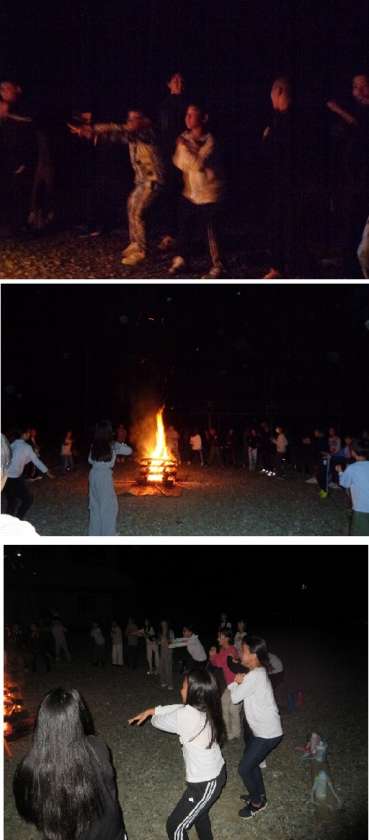 大きく燃え上がる火にしばらく見とれていましたが、ゲームが始まると盛り上がり、各クラスの出し物では、みんながノリノリで踊っていました。