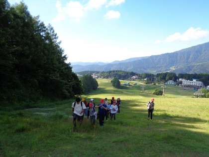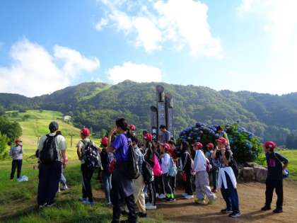 まずは、ハチ高原モニュメントの前で記念撮影をして、さあ、出発です。