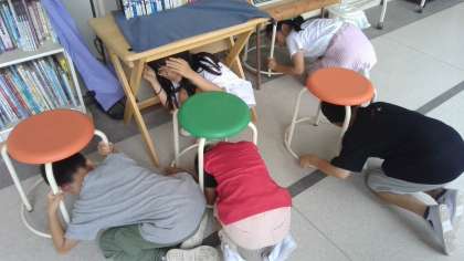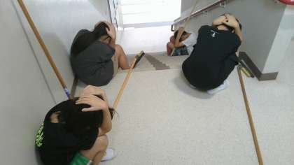 今日は掃除時間を使って、大地震発生を想定した避難訓練を行いました。