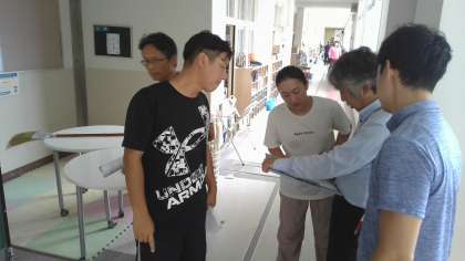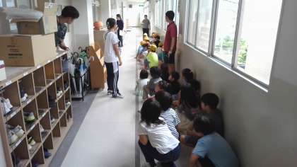 全員の避難が確認できたら、伝達リレーで、教頭先生が避難状況を集約。