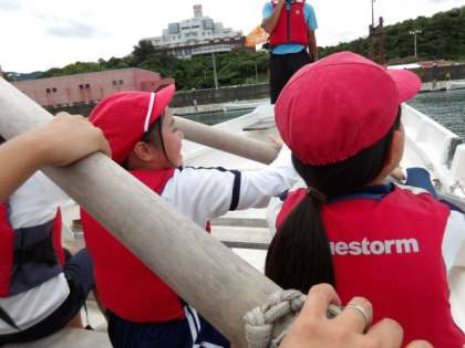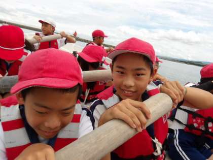 船長(インストラクター)の呼びかけに合わせて掛け声を連呼します。