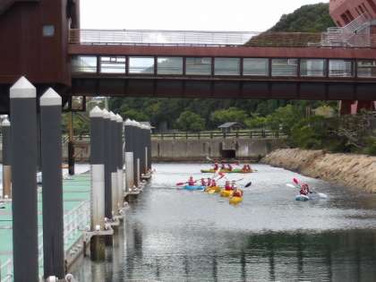 おっ、この狭い水路を競漕しながら戻って来るぞ!