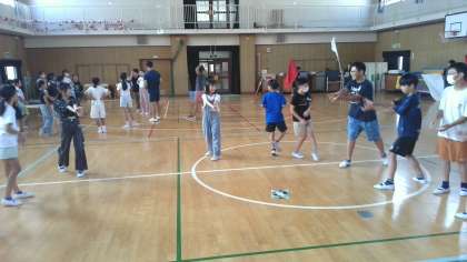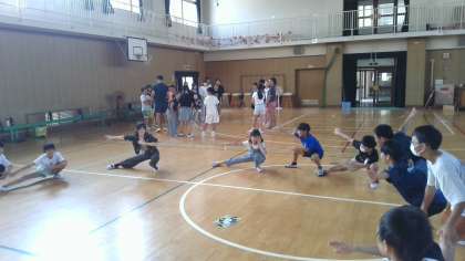 団長提案の三々七拍子の振り付けをみんなで練習中。
