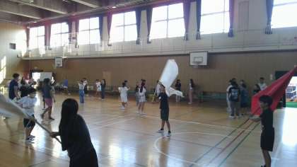 団員は、踊り手もいれば、叩き手、旗手もいます。