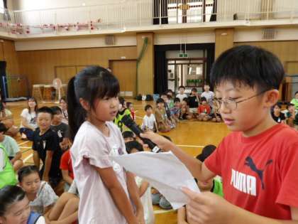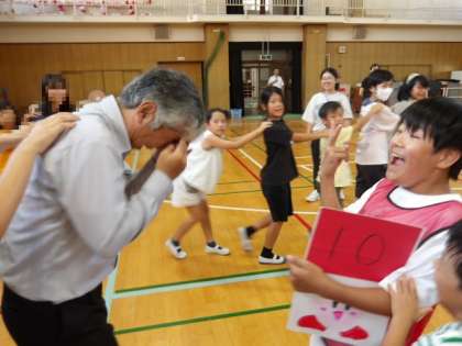 今日の児童集会はジャンケン列車。