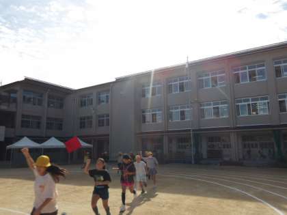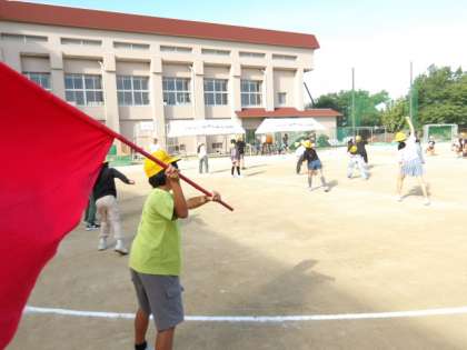 太鼓の音、旗がなびく音が秋空にしみ込んでいきます。