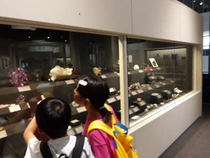 ノーベル賞受賞者の研究に基づく展示、高学年理科の発展学習の展示、そして魅惑の鉱物の展示。