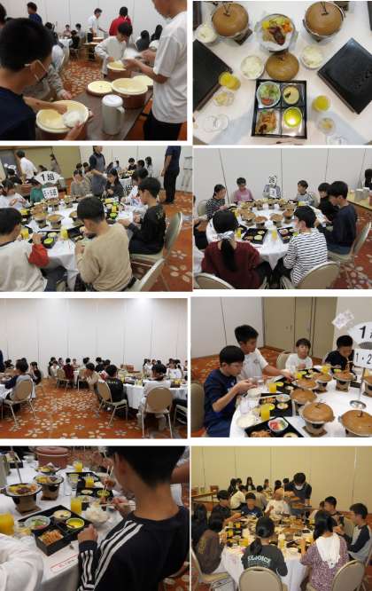 大きなハンバーグがプレートで温められました。野菜もたっぷりでした。お重には魚フライとスパゲッティ、スープにグラタン、サラダともりだくさんでした。