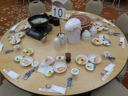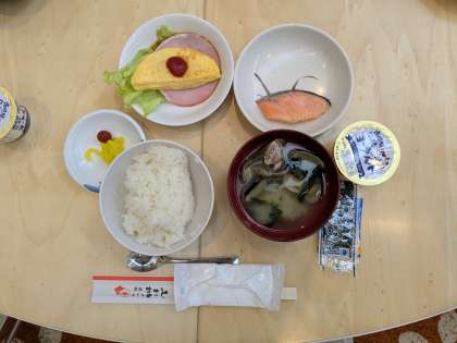 できたてのあさりのお味噌汁もありました。食事係が準備をして、美味しくいただきました。