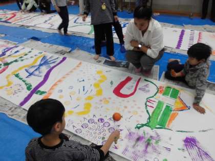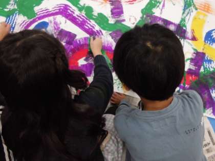 おかしの入れ物を使って、目を描いているところがおもしろかった!
