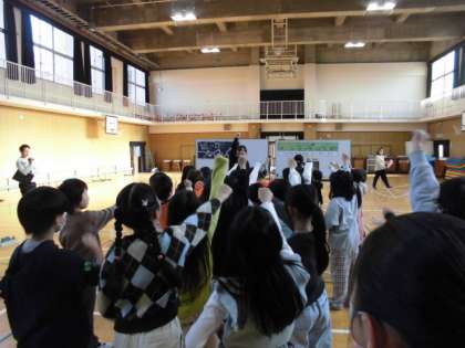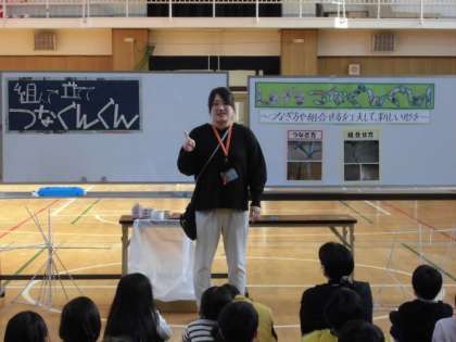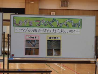 新聞紙を細く巻いたものをつなぎ合わせての造形遊び。