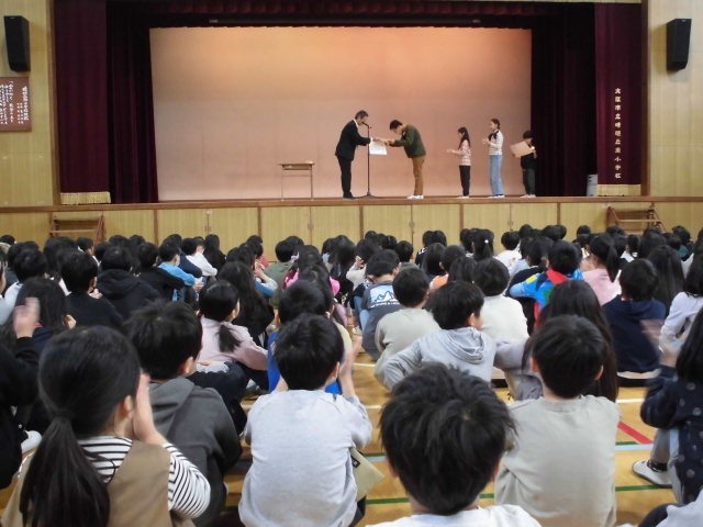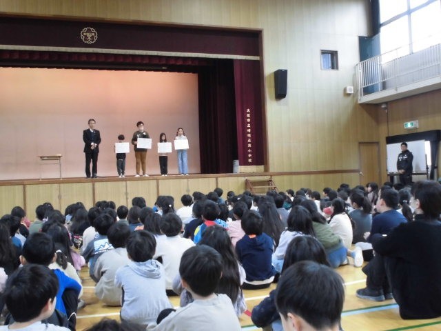 先週学校の玄関で展示していた今年度の大阪市防火・防災図画展の入賞者の表彰がありました。