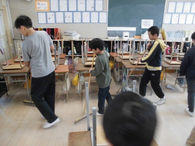1人ずつ役割分担が決まっているので、効率的な清掃活動が行われています。