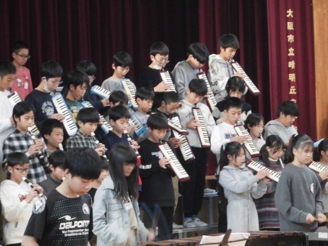 他学年の頑張りを鑑賞し合った合同音楽。