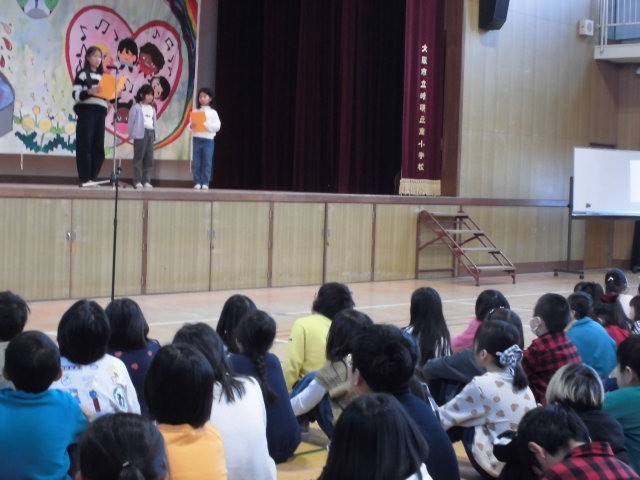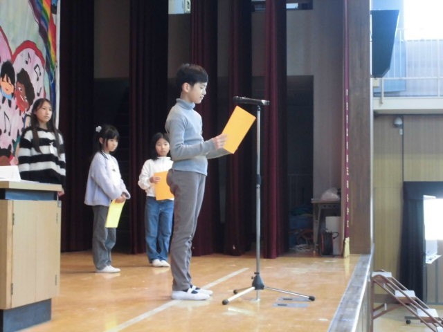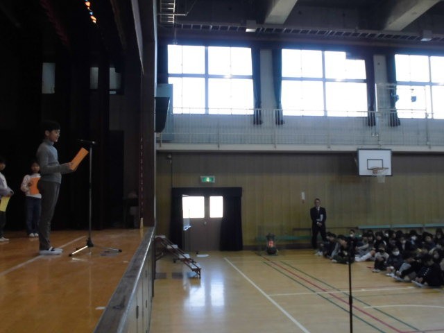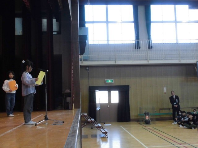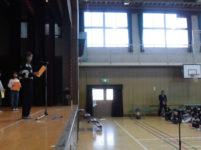 式の最後に2学期の思い出(夏休みも含む)作文を朗読。