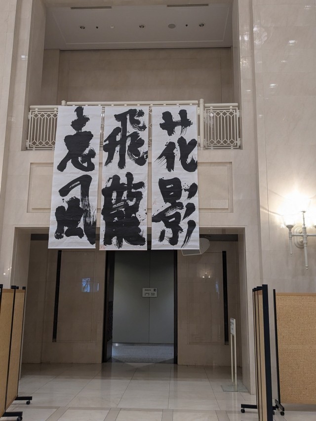 年末から年始にかけて、大阪市役所の玄関ホールに本校の子どもが製作した大型の書写作品が掲示されていました。