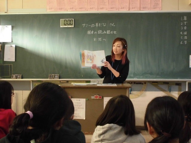 図書ボランティアさんたちが朝から教室に来てくださり、絵本の読み聞かせをしてくださいました。