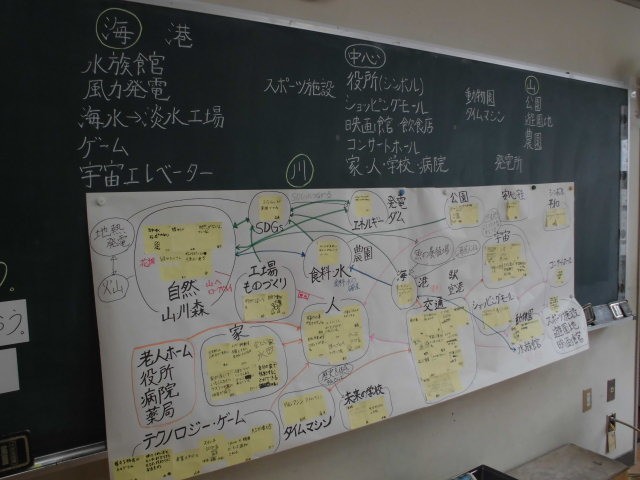 学習のめあては「未来のまち」をつくろう。