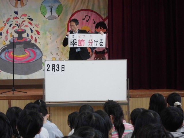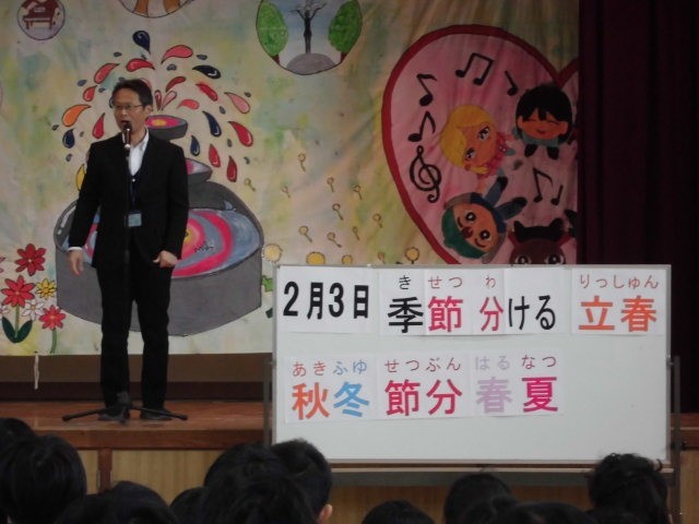校長先生からは、先日の探究活動発表会の報告と「節分」についてお話がありました。