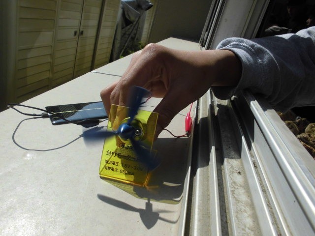 今日は手回し発電機と太陽光パネルを使いました。