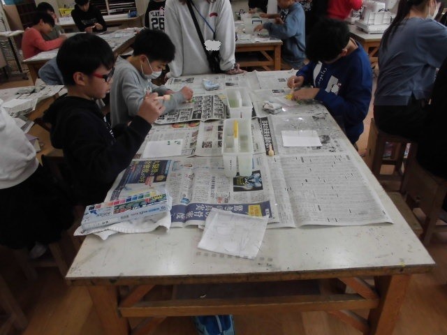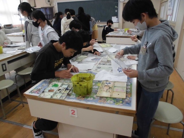 6年生が、生涯学習ルームのステンシル教室の方に教えてもらって作品を作りました。