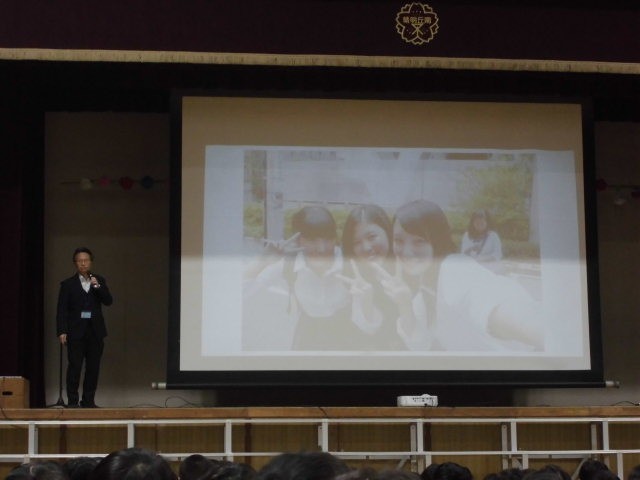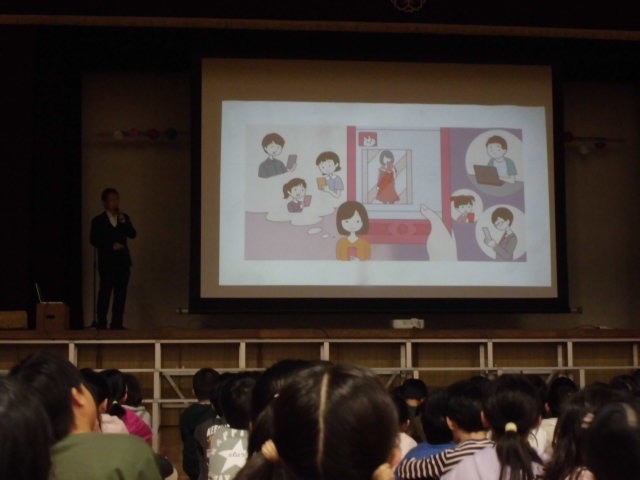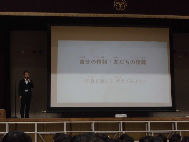 校長先生が「自分の情報・友だちの情報~写真を通して、考えてみよう~」というテーマでお話をしてくださいました。