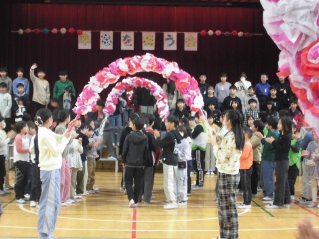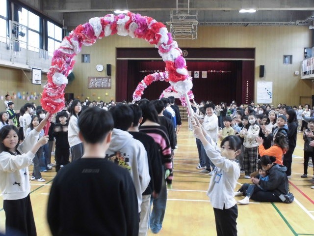 さあ、アーチをくぐって6年生の入場です。