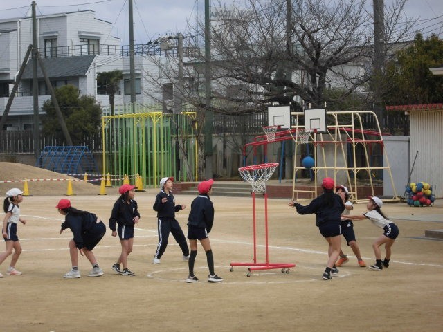 4年生、北風にも負けずセストボール。
