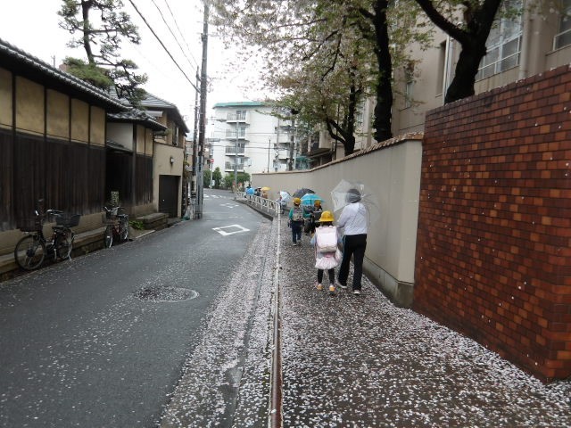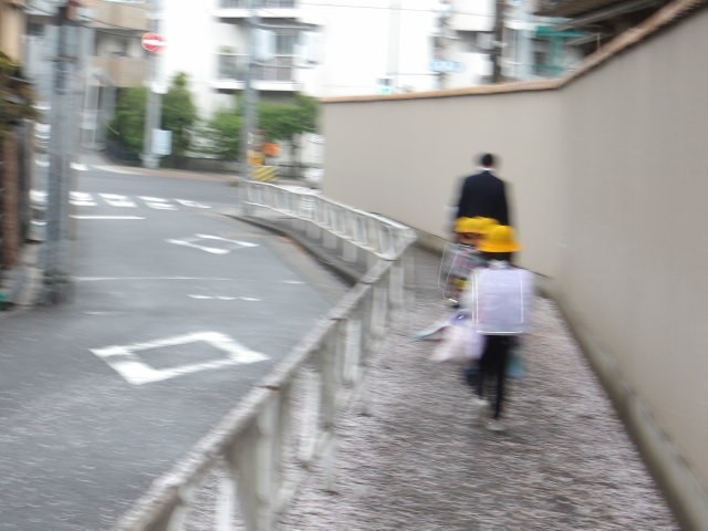 桜 舞い散る 通学路を 1年生が 帰っていく