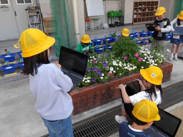 2年生が端末をもって、春を探しに行きました。