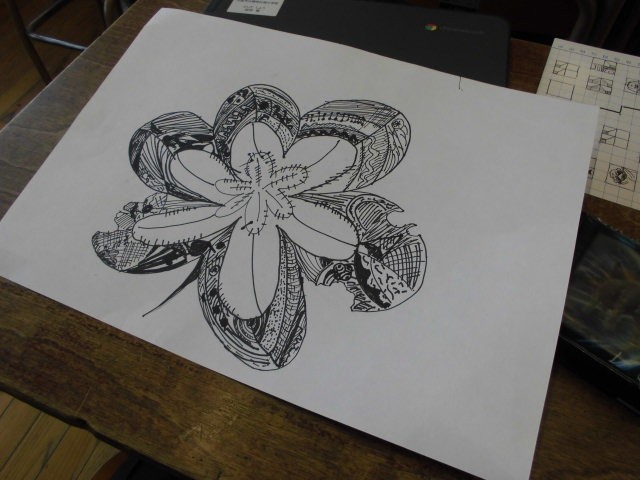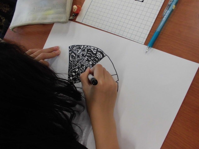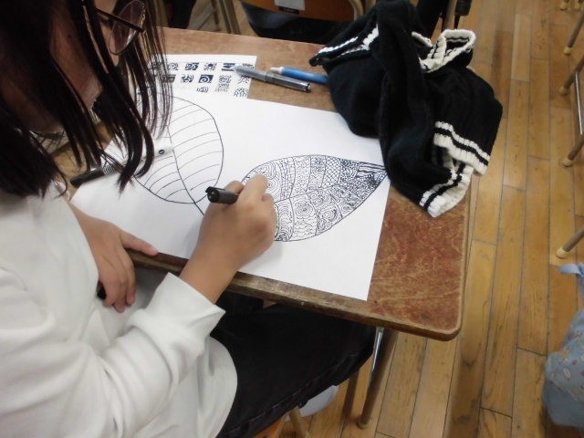 ゼンタングルという技法で自分だけの葉っぱを描いています。