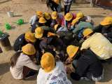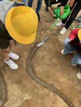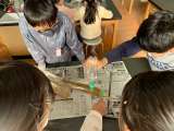 5年生の理科、流れる水の働きの学習。 同じ形の川を作り、違う量の水を流して、川の...