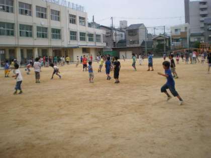 子どもたちは、久しぶりに再会した級友と活動するのが楽しいらしく、この暑い中、休み時間は、運動場は満杯。