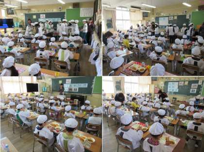 そして、待望の給食を6年生が持ってきてくれ配膳もしてくれました。