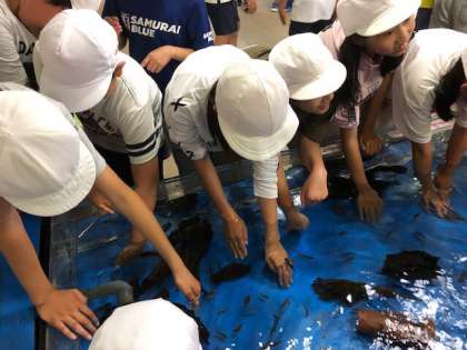 館内に入ってサメエイタッチやドクターフィッシュと触れ合いました。