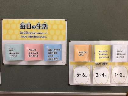 保健室前の掲示板には、私たちの大切な「歯」について、