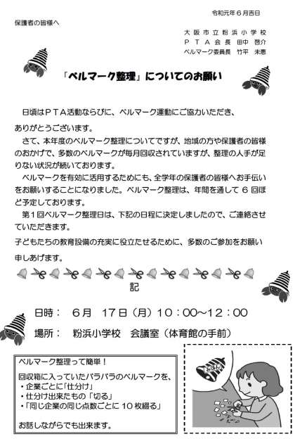 ベルマーク委員が中心になってベルマークの収集をしています。